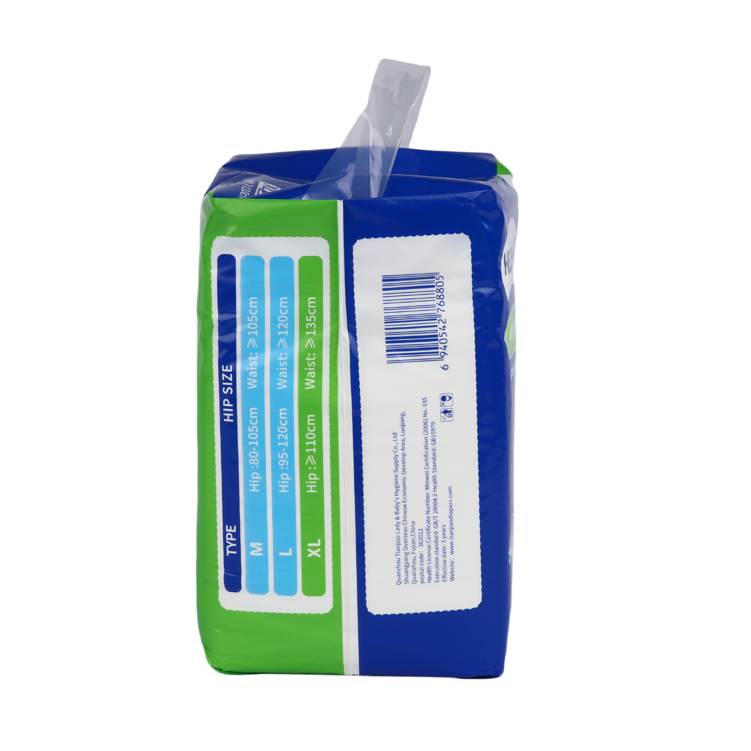 Este pañal para adultos de alta calidad proporciona una solución confiable y digna para el cuidado de la incontinencia. El producto se centra en la comodidad, la protección y la higiene, utilizando tecnología de absorción avanzada, materiales suaves y respetuosos con la piel y un diseño eficaz a prueba de fugas, adecuado para el uso diario y a largo plazo, brindando una experiencia seca y tranquilizadora durante todo el día.